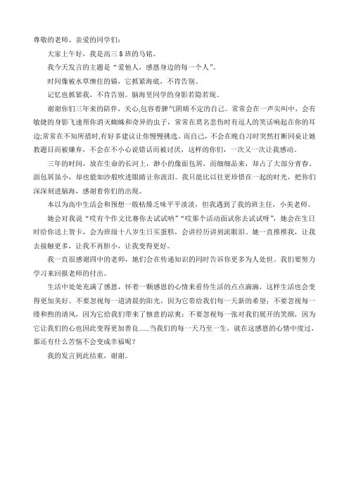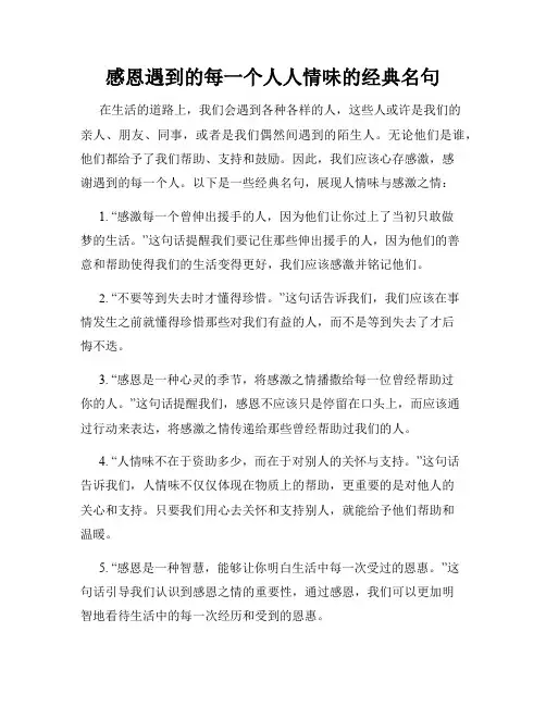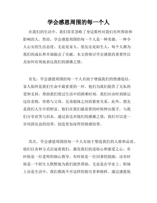 学会感恩周围的每一个人在我们的生活中,我们常常忽略了身边那些对我们有所帮助和影响的人。
