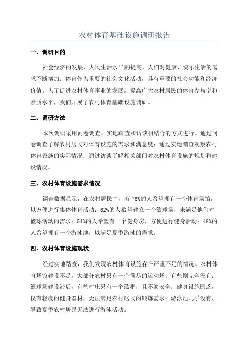 农村体育设施建设需求调查近年来,随着人民生活水平的提高和健康意识的增强,农村地区对体育设施的需求日益增长。
