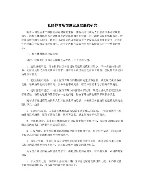 一、社区体育场馆建设现状目前,我国的社区体育场馆建设存在以下几个主要问题:1. 建设规模不足。