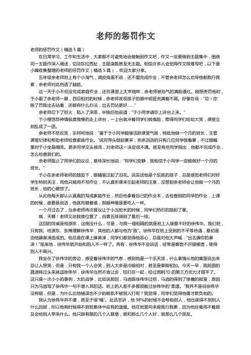 老师的惩罚作文老师的惩罚作文(精选5篇)在日常学习、工作和生活中,大家都不可避免地会接触到作文吧,作文一定要做到主题集中,围绕同一主题作深入阐述,切忌东拉西扯,主题涣散甚至无主题。