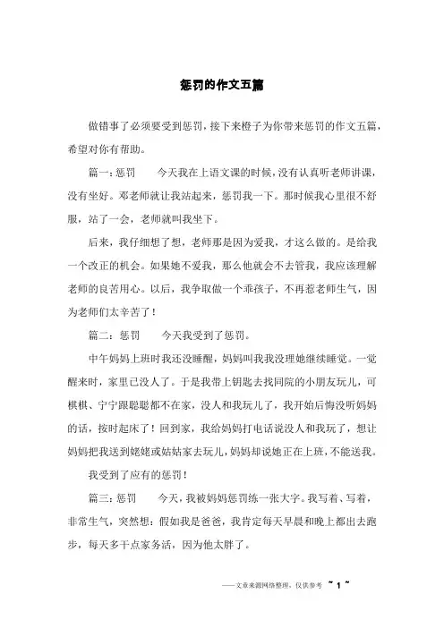 惩罚的作文五篇做错事了必须要受到惩罚,接下来橙子为你带来惩罚的作文五篇,希望对你有帮助。
