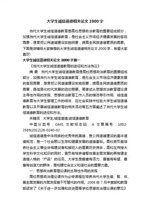 形势与政策——论当代大学生诚信与道德问题论当代大学生诚信与道德问题当今社会,大学生是国家宝贵的人才资源,是民族的希望、祖国的未来,肩负着人民的重托、历史的责任。