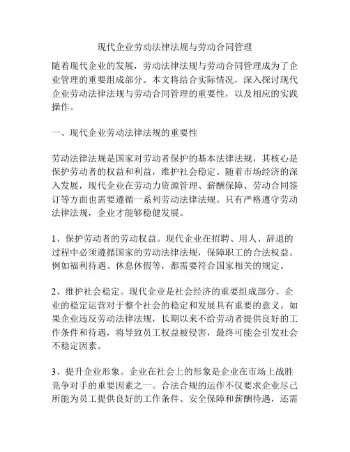 劳动法与企业经营在现代社会中,劳动法对于企业的经营活动具有重要的指导和规范作用。
