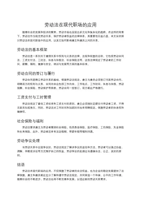 劳动法在现代职场的应用随着社会的发展和经济的繁荣,劳动市场也呈现出多元化和复杂化的趋势。