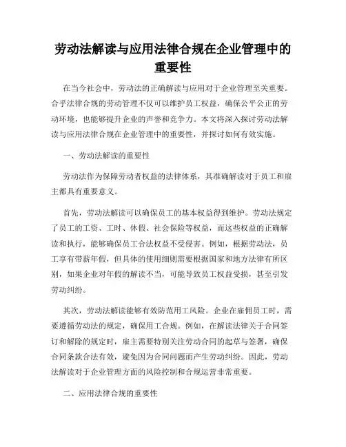 劳动法解读与应用法律合规在企业管理中的重要性在当今社会中,劳动法的正确解读与应用对于企业管理至关重要。