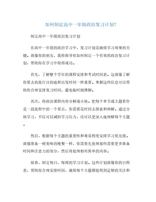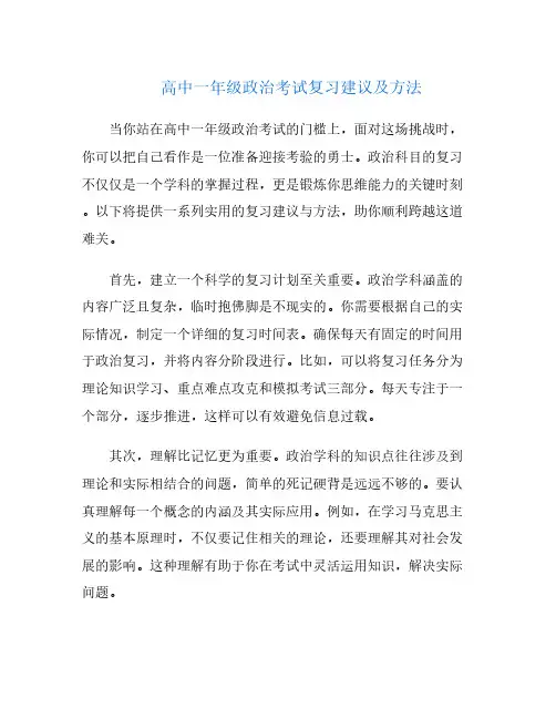 高中一年级政治考试复习建议及方法当你站在高中一年级政治考试的门槛上,面对这场挑战时,你可以把自己看作是一位准备迎接考验的勇士。
