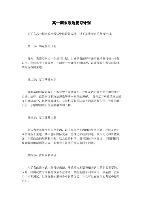 高一期末政治复习计划5篇