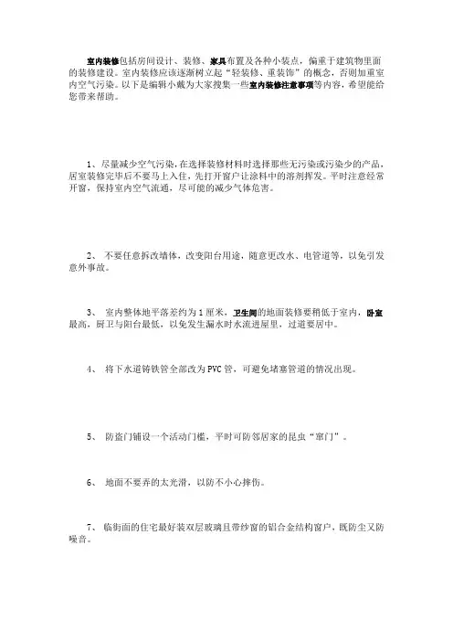 房屋装修注意事项房屋装修是⼀件⽐较⿇烦的事情。