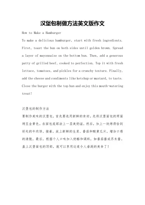 汉堡是一种十分受欢迎的快餐食品,其制作工艺流程相对简单而又精细。