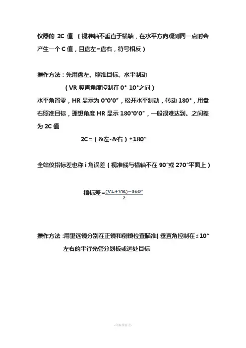 仪器的2C值(视准轴不垂直于横轴,在水平方向观测同一点时会产生一个C值,且盘左=盘右,符号相反)
