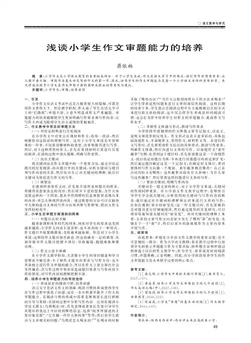 小学作文审题技能培养作文是学生语言表达和思维发展的一种重要形式,培养学生的审题技能是提高作文水平的基础。