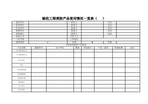 建筑工程选用消防产品登记表建设单位(盖章)施工单位(盖章)监理单位(盖章)工程名称:怡诚·曼山别院6#楼填表时间:注:1、竣工验收时须提供本表。