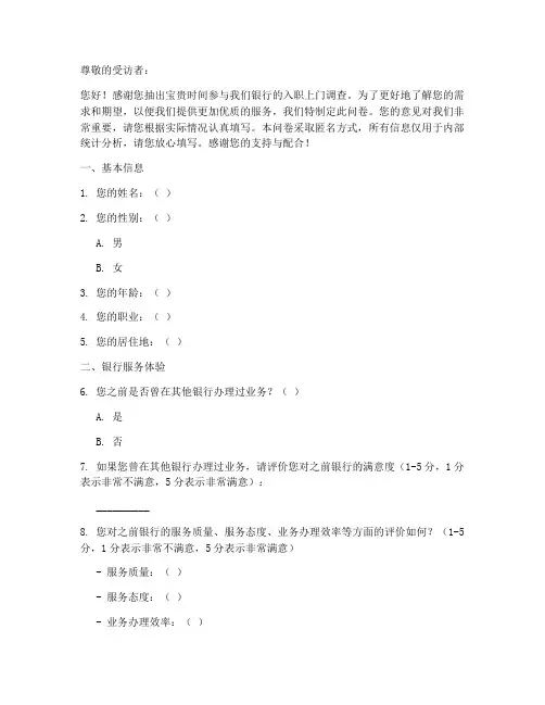 尊敬的受访者:您好!感谢您抽出宝贵时间参与我们银行的入职上门调查。