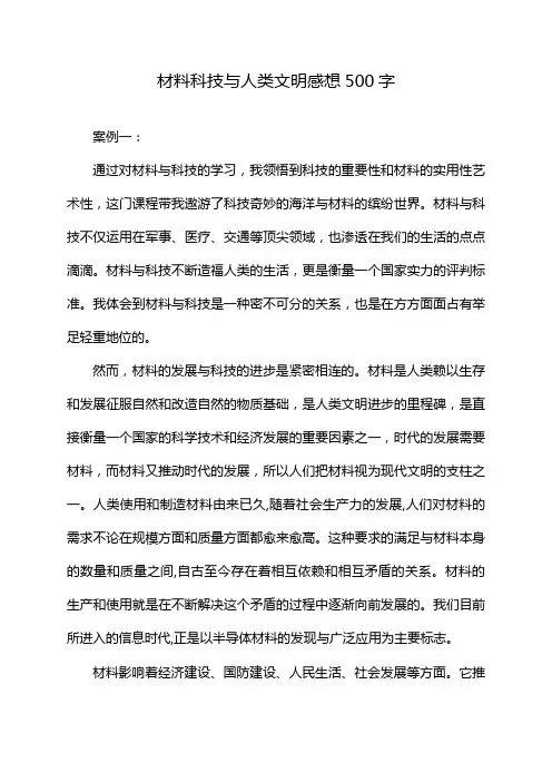 材料与人类文明论文材料是人类文明发展的基础,它承载着人类对世界的认知和改造,是人类文明的重要组成部分。