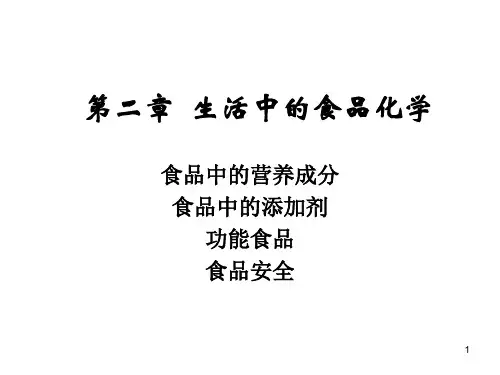 食品化学在食品科学中的作用和地位无机化学、有机化学、分析化学、物理化学、生物化学1.2食品化学的研究内容¾基本研究内容营养价值的组成、各成分的性质、结构和功能,及可能发生的各种化学变化和生物化学变化。