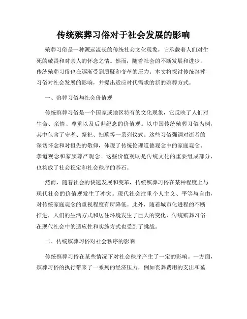 二、殡葬文化的变迁1. 火葬的普及随着社会的发展和人口的增长,土地资源日益紧张。