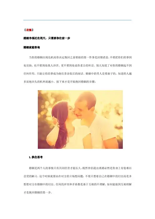 【花镇】婚姻幸福近在咫尺,只需要你往前一步婚姻家庭咨询当你的婚姻出现危机而你决定挽回之前要做的第一件事是封锁消息。