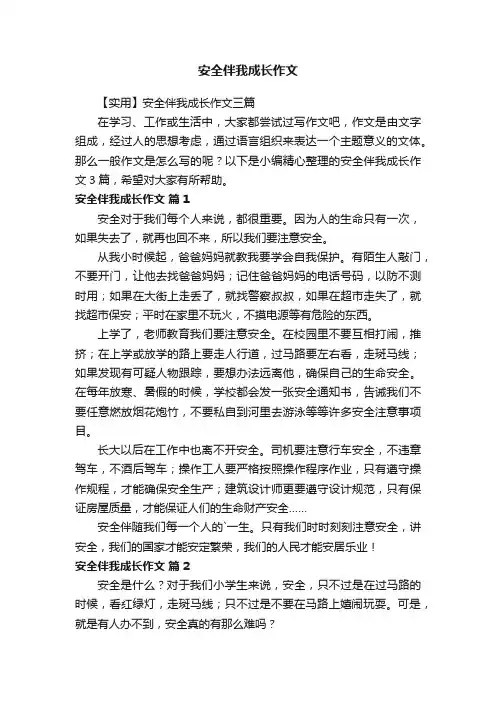 安全伴我成长作文【实用】安全伴我成长作文三篇在学习、工作或生活中,大家都尝试过写作文吧,作文是由文字组成,经过人的思想考虑,通过语言组织来表达一个主题意义的文体。