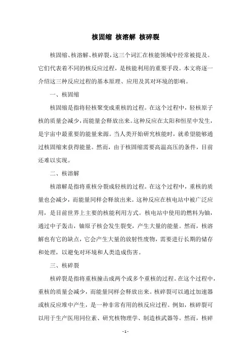 一、核固缩核固缩是指将轻核聚变成重核的过程。