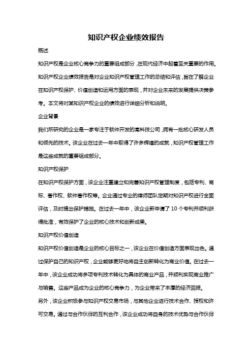 企业知识产权保护报告知识产权是现代企业发展的核心竞争力之一,对于企业的长期发展和创新能力具有重要作用。