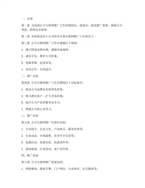第一章总则第一条为规范网络推广部门的管理,提高工作效率,保障公司利益,特制定本制度。