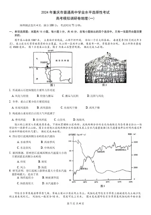 2024年重庆市普通高中学业水平选择性考试高考模拟调研卷地理(一)地理测试卷共4页,满分100分。