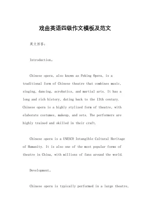 戏曲英语四级作文模板及范文英文回答:Introduction。