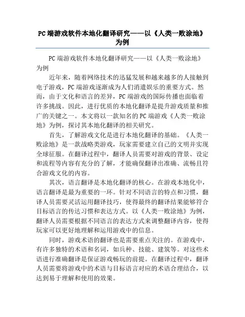 译创在游戏本地化翻译中的应用译创在游戏本地化翻译中的应用导言随着全球化的发展,游戏行业在全球范围内迅猛发展。