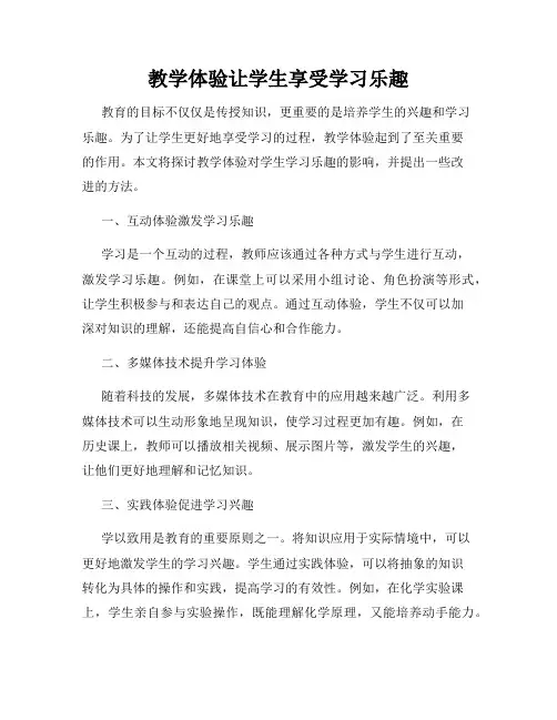 体验教案:让学生在学习中获得乐趣课堂教学一直被认为是多么枯燥乏味的体验,学习始终在学生心中占据着负面的地位。