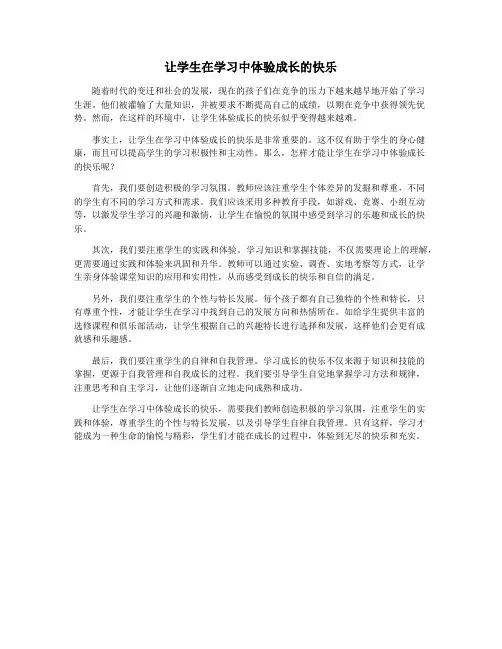 让学生在学习中体验成长的快乐随着时代的变迁和社会的发展,现在的孩子们在竞争的压力下越来越早地开始了学习生涯。