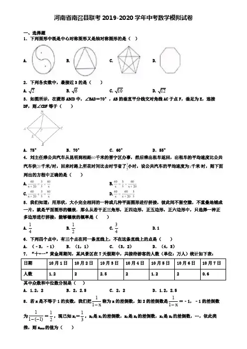 2024届期河南省南阳市南召县中考数学模拟试题考生请注意:1.答题前请将考场、试室号、座位号、考生号、姓名写在试卷密封线内,不得在试卷上作任何标记。