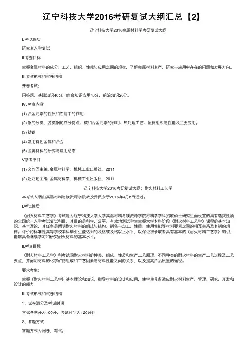 2016年沈阳工程学院专升本考试大纲《计算机科学与技术》《软件工程》通用第一部分理论测试部分《计算机网络技术》(总分55分)一、基本要求1.了解计算机网络的发展过程及发展趋势,计算机网络的应用及应用现状。
