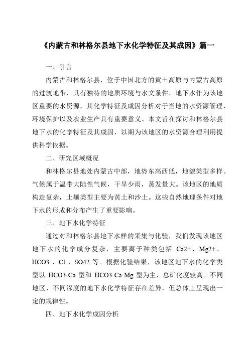 《内蒙古和林格尔县地下水化学特征及其成因》篇一一、引言内蒙古和林格尔县,位于中国北方的黄土高原与内蒙古高原的过渡地带,具有独特的地质环境与水文条件。