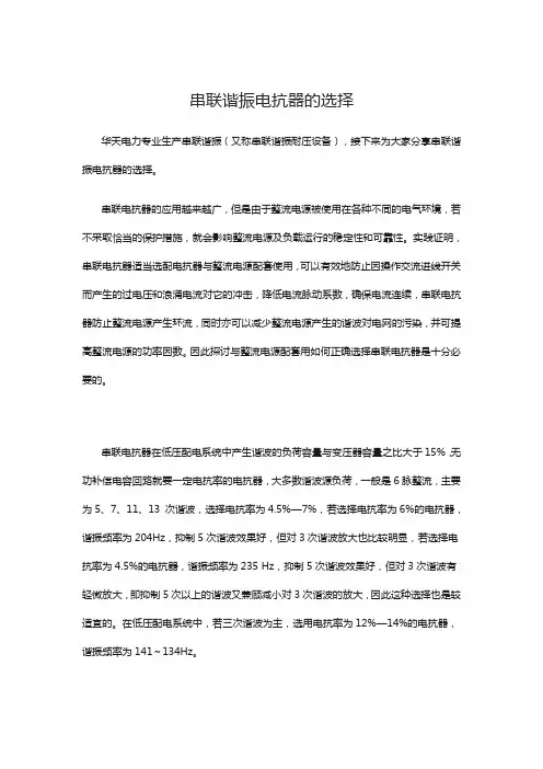 选择串联谐振电抗器方法串联谐振电抗器(Series Resonance Reactor)是一种电路元件,用于控制电流的大小和相位角。