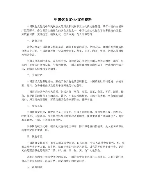 中国饮食文化-文档资料中国饮食文化是中华民族悠久的历史积淀和多元文化的交融体现,具有丰富的内涵和广泛的影响。