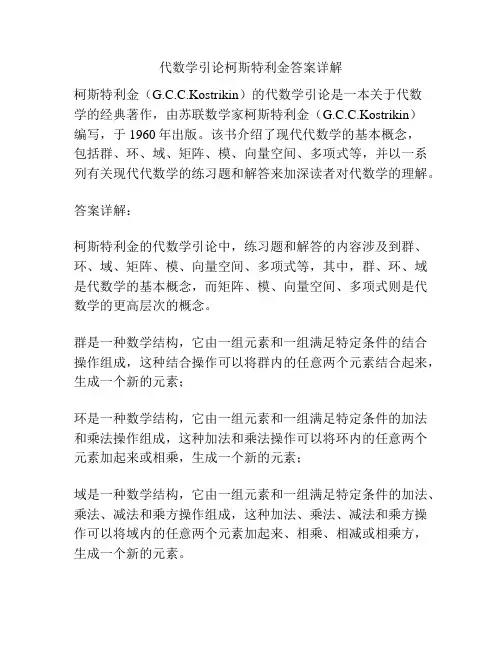 学的经典著作,由苏联数学家柯斯特利金(G.C.C.Kostrikin)