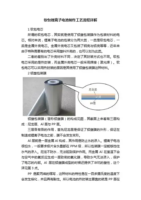 软包锂离子电池制作工艺流程详解1软包电芯所谓的软包电芯,其实就是使用了铝塑包装膜作为包装材料的电芯。