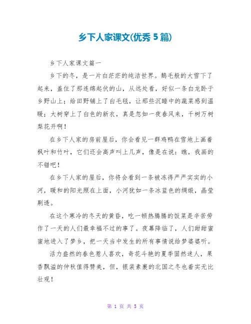 乡下人家课文(优秀5篇)乡下人家课文篇一乡下的冬,是一片白茫茫的纯洁世界。