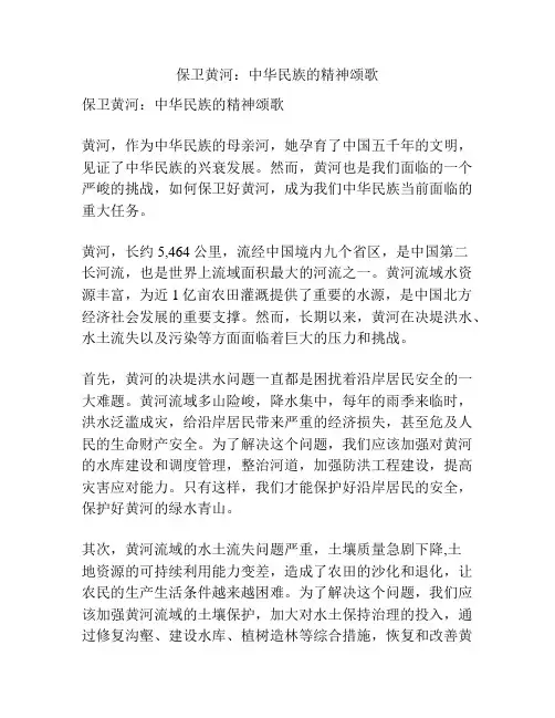 保卫黄河:中华民族的精神颂歌保卫黄河:中华民族的精神颂歌黄河,作为中华民族的母亲河,她孕育了中国五千年的文明,见证了中华民族的兴衰发展。