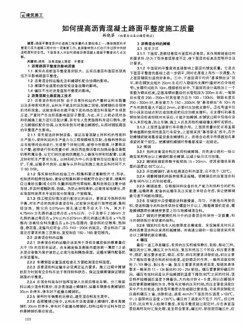 沥青路面施工平整度的控制措施沥青路面施工平整度的控制措施沥青路面是公路、机场跑道和广场等基础设施中很常见的路面类型。