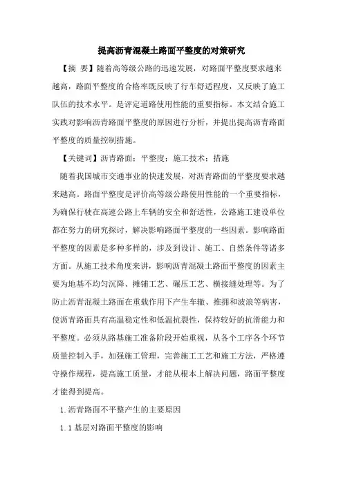 1.沥青路面不平整产生的主要原因1.1基层对路面平整度的影响道路的基层对路面平整度有着重要影响。