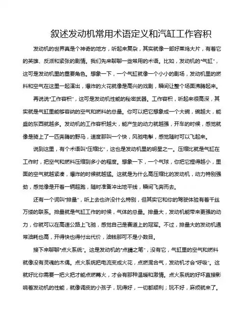 叙述发动机常用术语定义和汽缸工作容积发动机的世界真是个神奇的地方,听起来复杂,其实就像一部好莱坞大片,有着它的英雄、反派和紧张的剧情。
