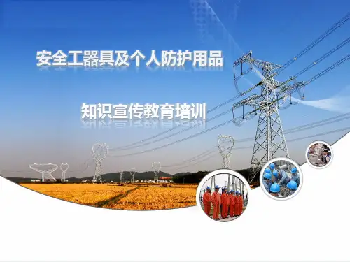 具体培训内容:1、电力安全工器具基本概念2、电力安全工器具常用类型3、电力安全工器具的正确使用方法4、电力安全工器具的保管及存放5、违章使用安全工器具事故案例6、电力安全工器具管理要求1.1电力安全工器具定义电力安全工器具通常是指为防止触电、灼伤、坠落、摔跌等事故,保障工作人员人身安全的各种专用工具和器具。