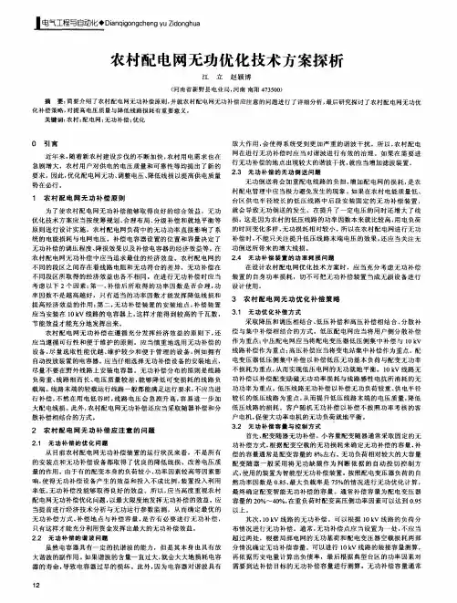 四、未来发展方向随着配电网技术的不断发展,动态无功优化方法也需要不断改进和创新。