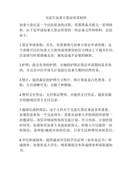 交流生加拿大签证所需材料加拿大签证是一个比较复杂的过程,需要准备并提交一系列材料。