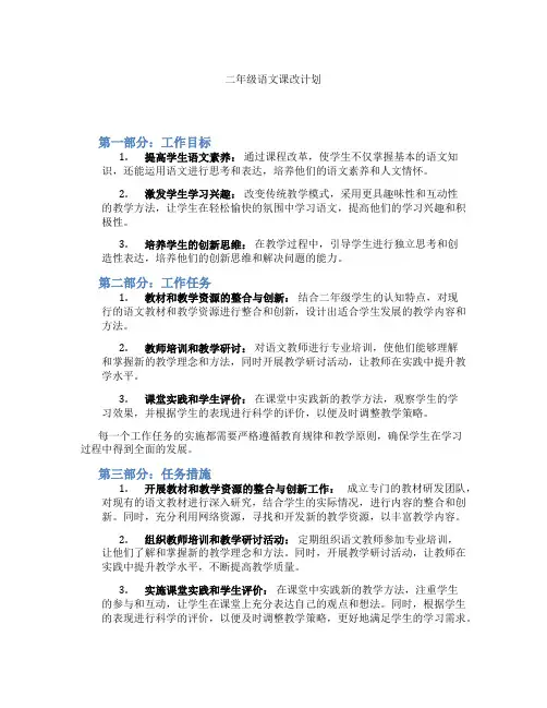 二、改课目的1. 适应新课标要求,提高语文课程的针对性和实用性;2. 增强学生的语文学习兴趣,激发学生对语文学习的热情;3. 培养学生的语文素养和核心素质,提高学生的综合素质。