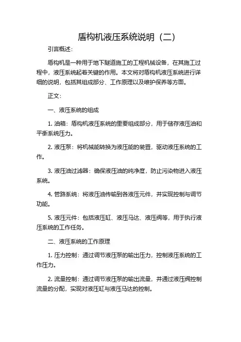 盾构机液压系统说明(二)引言概述:盾构机是一种用于地下隧道施工的工程机械设备,在其施工过程中,液压系统起着关键的作用。