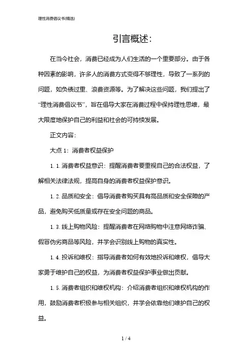 正文内容:大点1:消费者权益保护1.1.消费者权益意识:提醒消费者要重视自己的合法权益,了解相关法律法规,提高自身的消费者权益保护意识。