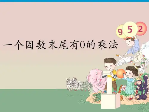 小结:计算一个因数末尾有“0”的乘法, 先用另一个因数去乘第一个因数“0”前面的数, 再看第一个因数末尾有几个“0”, 就在乘得的数后面添上几个“0”。