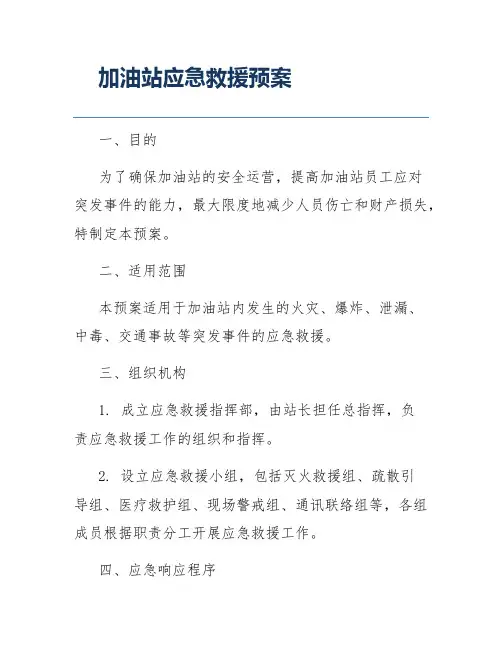 一、目的为提高加油站对突发事件应急处置能力,保障加油站安全、有序、高效地应对各类突发事件,减少事故损失,制定本预案。